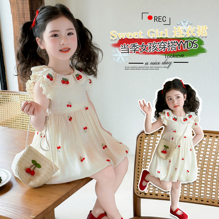 1*1下载视频“2622樱桃翻领刺绣裙”